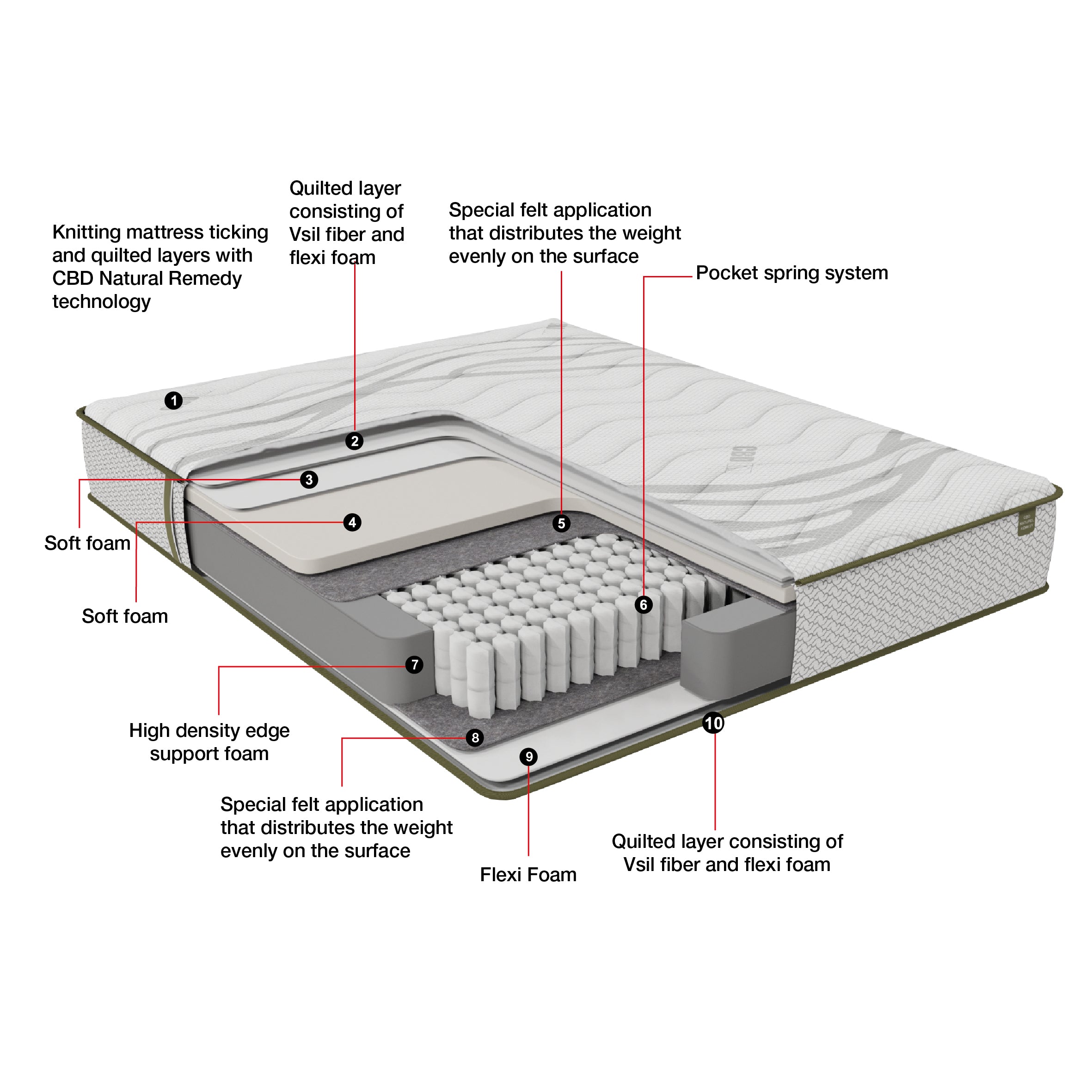 Make the bedroom a true sanctuary with the Haven Mattress. This heavenly mattress features ticking infused with CBD Natural Remedy technology for a deeply calming effect on the body and delivers a soft firmness that cradles you throughout the night. Experience sound sleep with soft foam layers and a pocket spring system that contours the body and targets pressure points. High density edge support foam increases the surface area of the mattress and provides all over comfort and support. This mattress was made in the USA at our factory in Fort Lauderdale, FL.